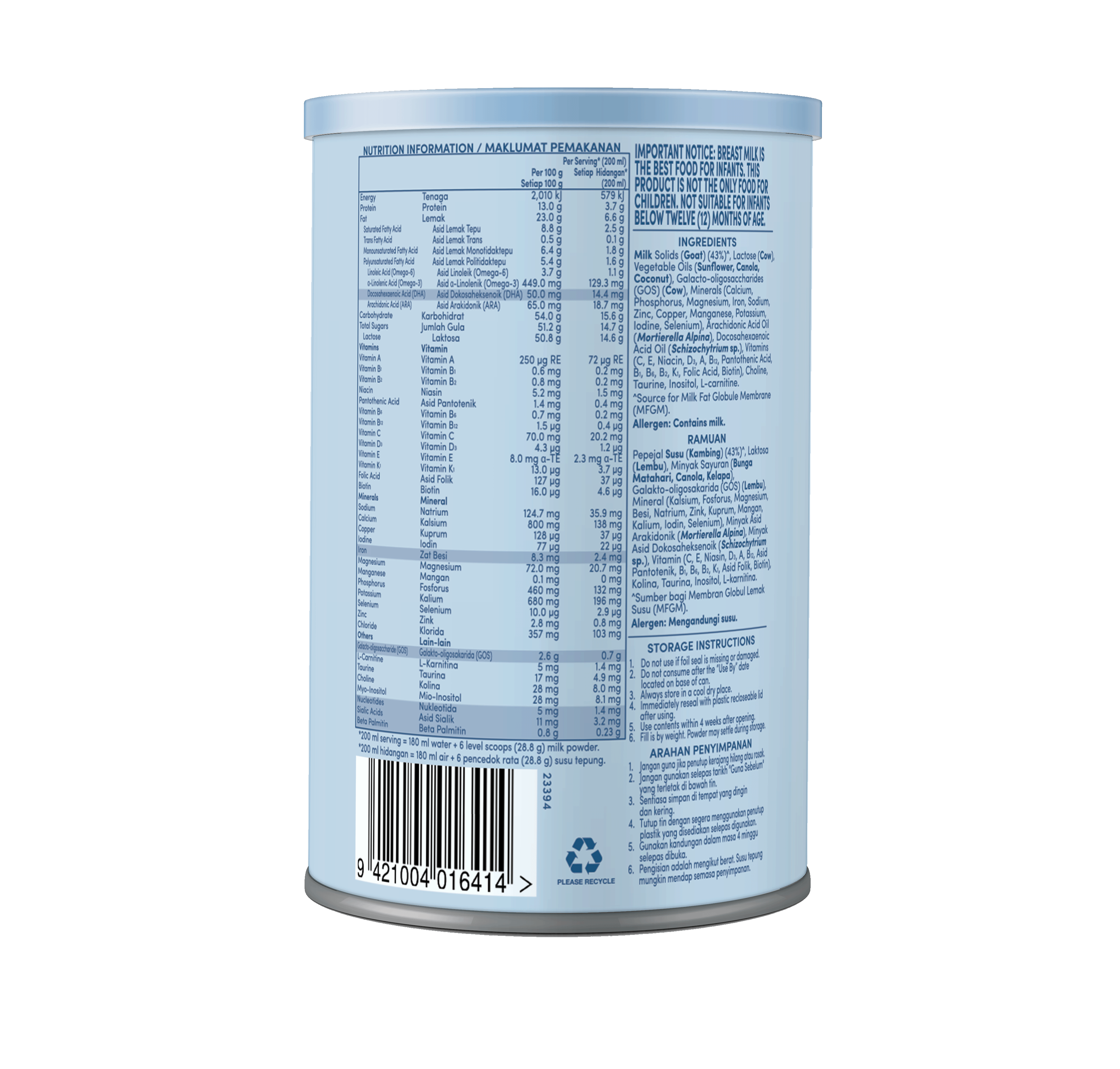 - Diperkaya dengan DHA, ARA dan prebiotik (GOS)